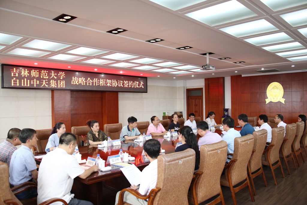 7月15日,我校与白山中天集团战略合作框架协议签约仪式在第一教学楼八楼会议室举行。白山中天集团董事长魏恒山、监事会主席慈昕,我校党委副书记、校长杨景海,党委副书记刘万民,党委常委、副校长张作岭出席签约仪式。白山中天集团相关部门和我校相关学院、处室负责人参加签约仪式。刘万民主持签约仪式。
