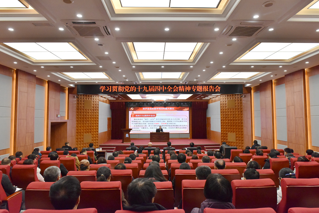 11月27日,学校在图书馆学术报告厅召开学习贯彻党的十九届四中全会精神专题报告会。吉林省委宣讲团成员、省委讲师团团长、吉林省社会科学院副院长史守林作专题报告。校党委书记许才山等校领导班子成员出席会议,各单位党政负责人、副科级以上干部、支部书记、教师代表参加会议。校党委副书记祖国华主持会议。