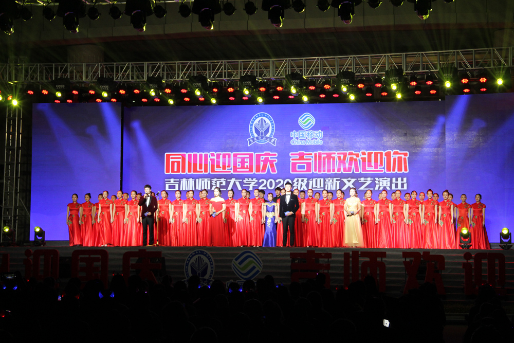 9月27日,学校在第一教学楼前广场举办“同心迎国庆·吉师欢迎你”欢迎2020级新同学文艺演出。校党委书记许才山,校长杨小天,党委副书记刘万民,党委常委、纪委书记、监察专员侯奎岩,党委常委、副校长曲殿彬、张作岭、车广波,副校长赵经武与师生代表共同观看演出。