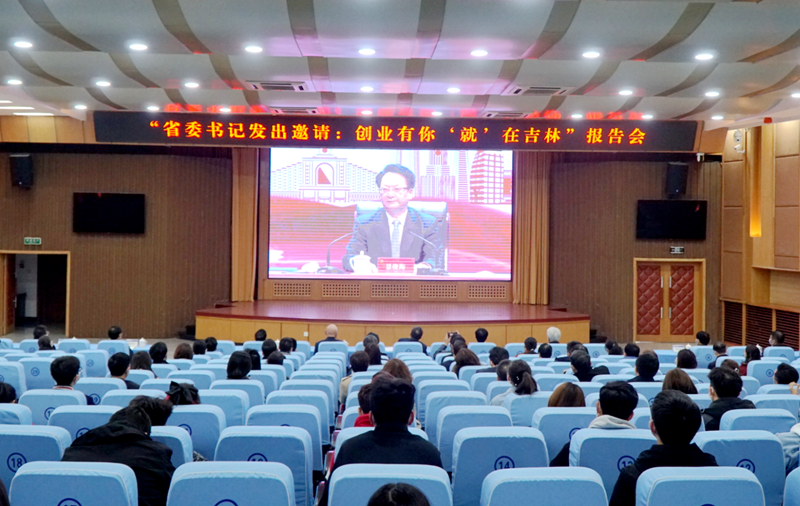 4月8日,省委书记景俊海在吉林大学出席“创业有你,‘就’在吉林”助力新时代吉林振兴发展首场宣讲报告会。校长杨小天,党委副书记祖国华、刘万民,党委常委、纪委书记、监察专员侯奎岩,党委常委、副校长李海波、曲殿彬、张作岭、车广波,副校长赵经武,各单位党政负责人、学生就业工作处全体教师、全体辅导员、青年教师及学生近千人分别在图书馆报告厅以及教室、会议室以观看视频直播的形式收看宣讲报告会。其余师生通过在线观看视频回放的方式收看报告会。