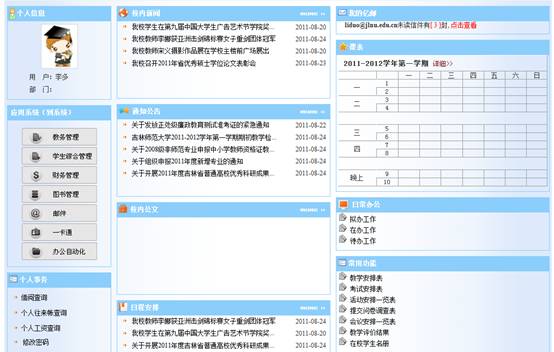 从统一门户进入之后就可以使用相应的子系统了,下图是进入门户之后的界面。