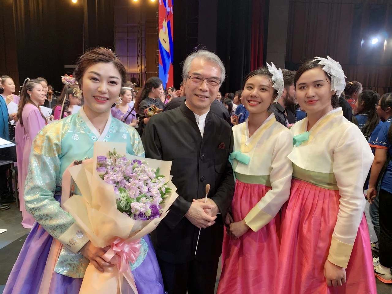 “琴鸣凤舞”伽倻琴乐团成立于2017年,演出以朝鲜音乐及伽倻琴为主,乐团旨在将跨境文化传承融入“一带一路”发展策略,大力弘扬中国少数民族音乐特色,为国家艺术文化教育与表演事业发展做贡献。学校非常重视这次难得的演出机会,胡晓伟院长和彭丽颖老师对节目内容反复提出修改意见,王欢老担任声乐指导,校领导和相关部门全方位支持,保证了这次演出的质量和水平。