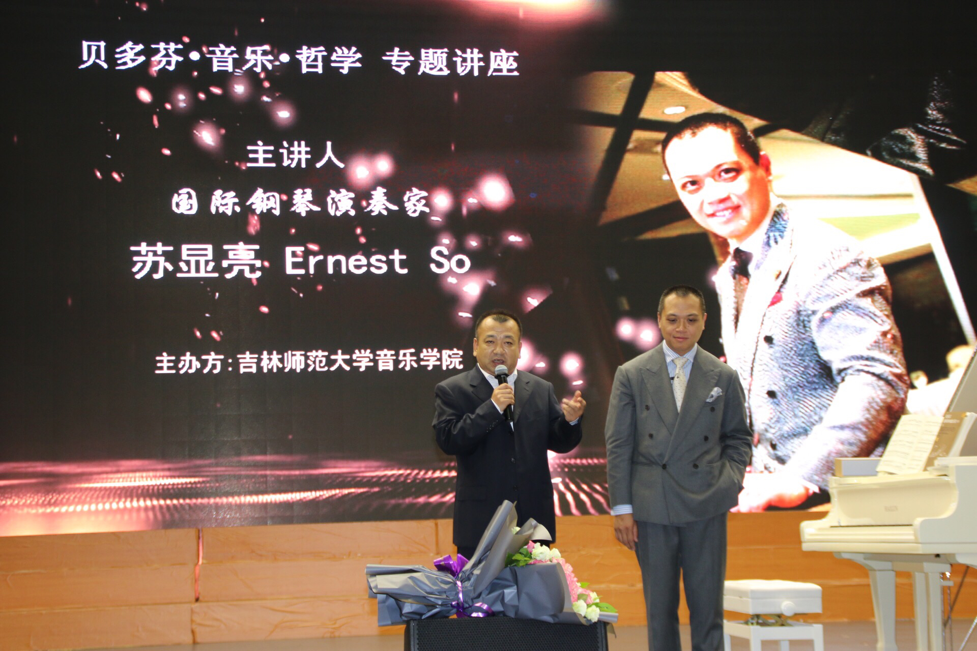 2018年9月12日下午,国际著名美籍华人钢琴演奏家苏显亮教授,在音乐厅做了题为《贝多芬·音乐·哲学》的学术讲座。院长胡晓伟教授主持讲座,院党总支书记陈明宏、副院长任会平、颜铁军和全院师生及其他学院部分学生听取了讲座。