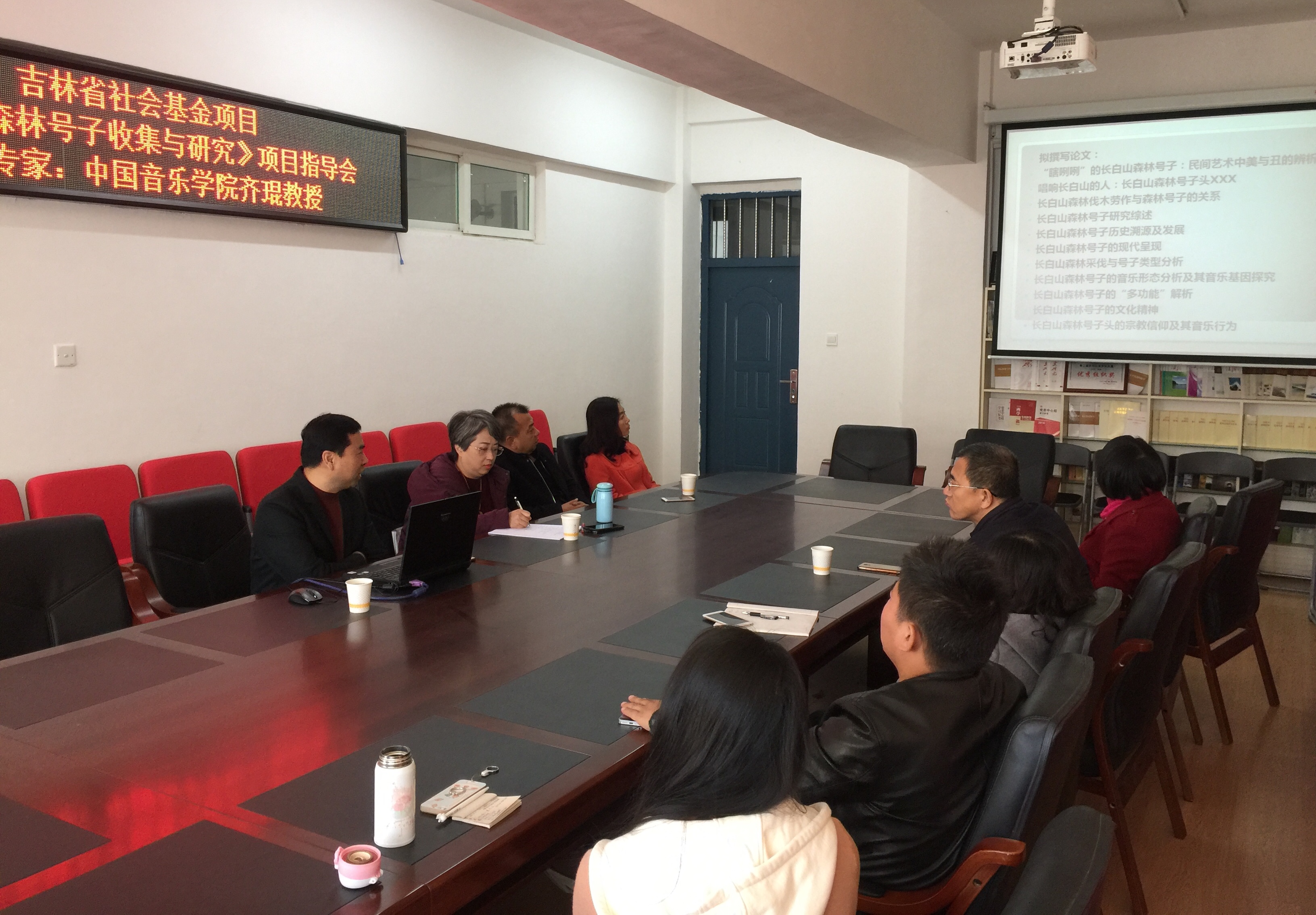 2017年10月17日上午,我院举办吉林省社科基金项目《长白山森林号子收集与研究》项目指导会,中国音乐学院博士生导师、长城学者、《中国音乐》常务副主编齐琨教授作现场指导。院长胡晓伟教授、院党总支书记陈明宏副研究员、副院长任会平副教授和颜铁军博士及课题组成员老师参加了会议。