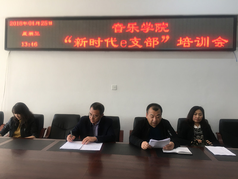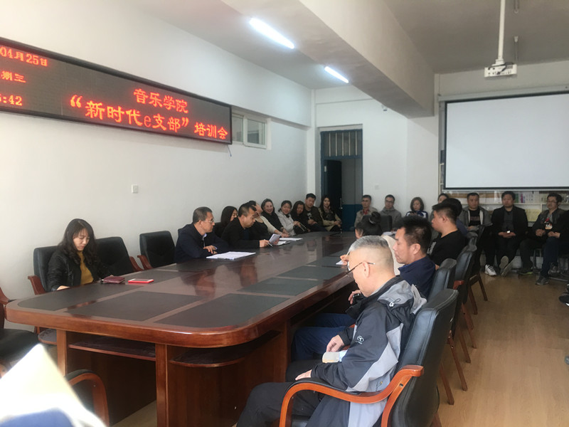 为了贯彻省委组织部、省高校工委和学校党委的相关要求,发挥好新版“新时代e支部”作用,4月25日下午,音乐学院党总支在3楼党员活动室召开“新时代e支部”培训会。会议由党总支书记陈明宏主持,教师第一、第二支部和学生支部的全体党员参加了此次培训。