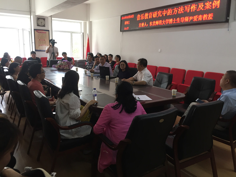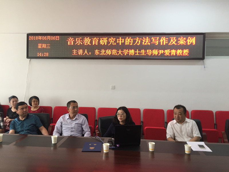 2018年6月6日下午,东北太阳成集团tyc122cc入口博士生导师、二级教授尹爱青博士,应邀在我院3楼会议室做了题为《音乐教育研究中的方法写作及案例》的学术讲座。院长胡晓伟教授主持讲座,院党总支书记陈明宏、副院长任会平、颜铁军和全院专任教师及在校研究生听取了讲座。