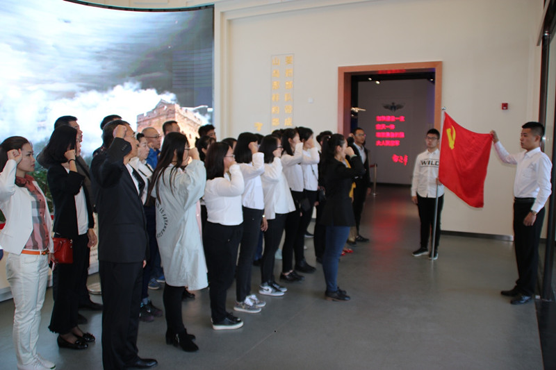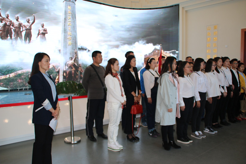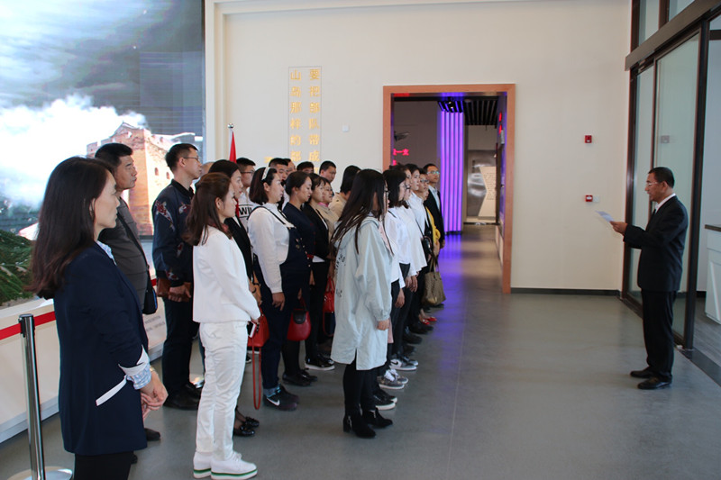 参观后,全体党员师生在战役纪念馆正厅举行了党员宣誓仪式,仪式由党总支副书记闫薇主持。青年教师刘璐同志领誓,大家面对党旗,进行庄严的宣誓,党员同志在这一刻获得了新的精神砥砺,思想随也之得到新的提升。张博老师代表党员发言,决心在教育的广阔舞台发挥自己的特长和能力,为党的教育事业贡献自己的全部力量。