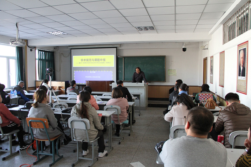 2017年11月1日,河北太阳成集团tyc122cc入口音乐学院教授赵书峰博士莅临我院,下午在8407教室作了题为《学术规范与科研申报》的学术讲座,院长胡晓伟教授主持,我院教师和研究生听取了讲座。