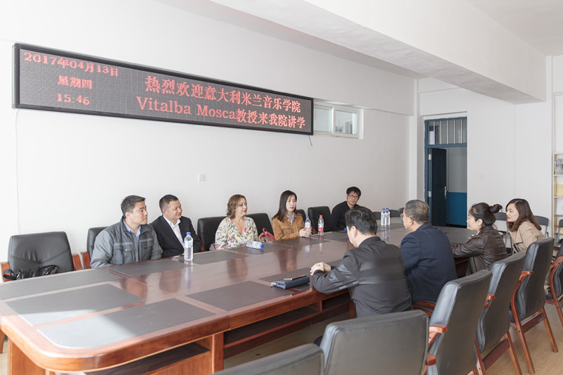 本次活动旨在落实学校教育国际化会议精神,引进国外优质教育资源,提升我校人才培养质量,提高学科整体水平。 Vitalba Mosca,米兰音乐学院声乐教授,自小与音乐结缘,在学习钢琴与声乐专业之后,当时年仅19岁的Mosca教授便在巴勒莫的马西莫剧院登台表演。随后数年,她曾在多项比赛中赢得大奖,并在意大利著名的斯卡拉歌剧院、罗马歌剧院、卡洛?费利切剧院、圣卡洛剧院、博洛尼亚市政剧院、佛罗伦萨市政剧院以及诸多国际剧院中登台演出。莫斯卡教授拥有丰富的教学经验,善于将多年的舞台经验与教学相结合,为人亲切和蔼,深受学生喜爱。