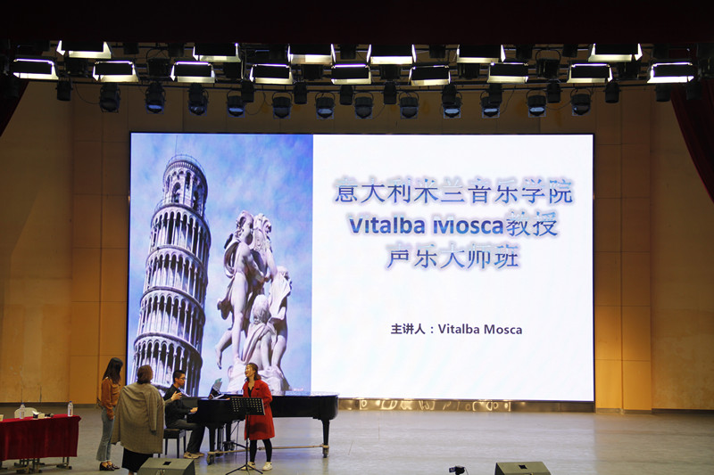 在大师班讲座上,有9名学生进行了演唱,Vitalba Mosca教授针对每名学生的意大利语言、情感,特别是对歌曲的细致化处理等都作了精细指导。同时,通过Vitalba Mosca教授的精彩讲解和示范演唱,让师生在短时间内领会到意大利歌曲、咏叹调的要领与精髓,提升个人音乐表达及演唱能力。