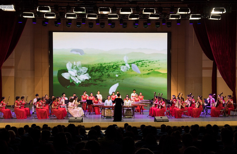 音乐会上,我院的民族乐队学生演奏了8个节目。民族管弦合奏《花好月圆》、《茉莉花》展现了我国传统音乐虚实相生的审美意蕴,展示了国乐风华;古筝合奏《万钧、气势磅礴,技法丰富多变;马头琴、二胡合奏《牧马人》,琴声悠扬久远,二胡演奏激情奔放,勾勒出一幅极美的草原画面;笛子合奏《扬鞭催马运粮忙》体现了浓郁的东北民间音乐特色;琵琶、古筝二重奏《春江花月夜》表现了“春江潮水连海平,海上明月共潮生”的美妙音画;民乐合奏《草原英雄小姐妹》演奏了蒙古族女孩用生命保护集体财产的动人故事;二胡合奏《战马奔腾》充满了音乐激情,将二胡乐器的性能发挥得淋漓尽致。