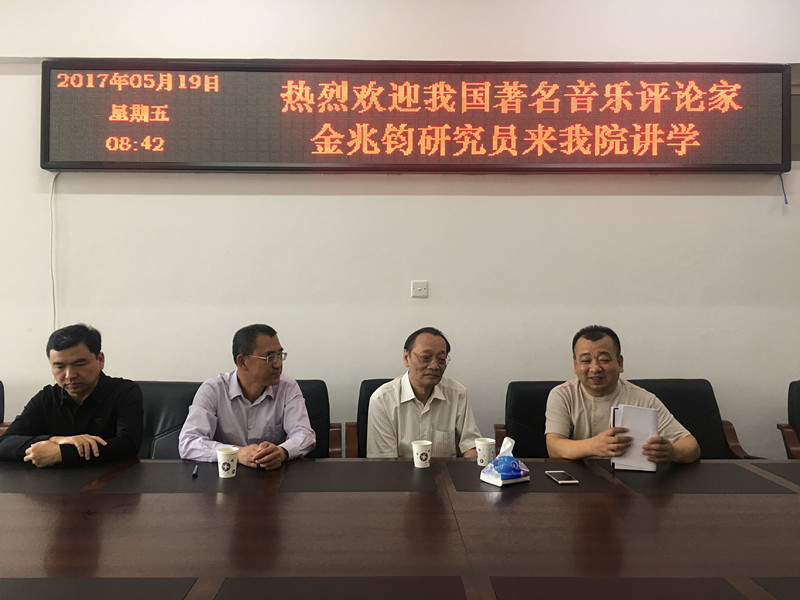 聘任仪式后,金兆钧先生在第八教学楼(音乐楼)8407教室为我院教师作了《谈音乐论文的选题与写作----以一个编辑的视角》的学术讲座,在图书馆报告厅为我校师生作了《真人秀能否振兴华语歌坛》的学术报告,使听讲师生开阔了视野,受益匪浅。