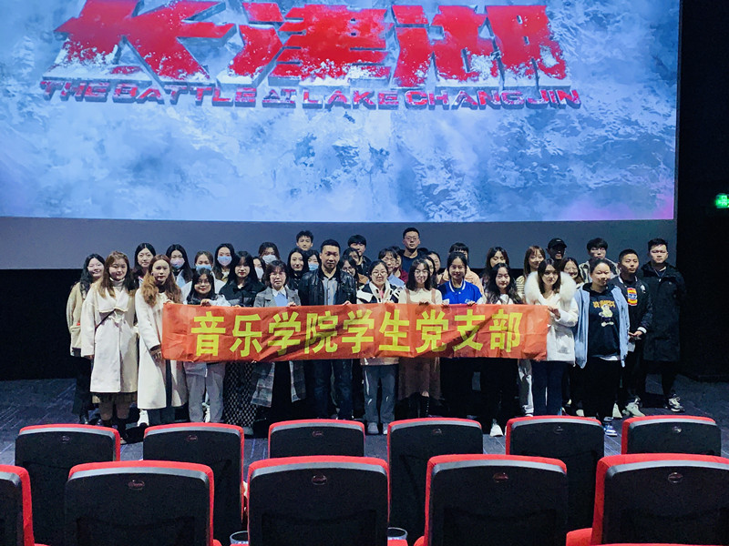 为推动党史学习教育和“四史”宣传教育走深走实,进一步教育引导师生党员领悟党的伟大精神,增强党的意识观念,抒发爱国主义情怀,激发爱岗敬业和勤奋学习精神,凝聚奋进力量,音乐学院党总支于2021年11月3日下午组织全院师生党员走进影院观看爱国主义影片《长津湖》。