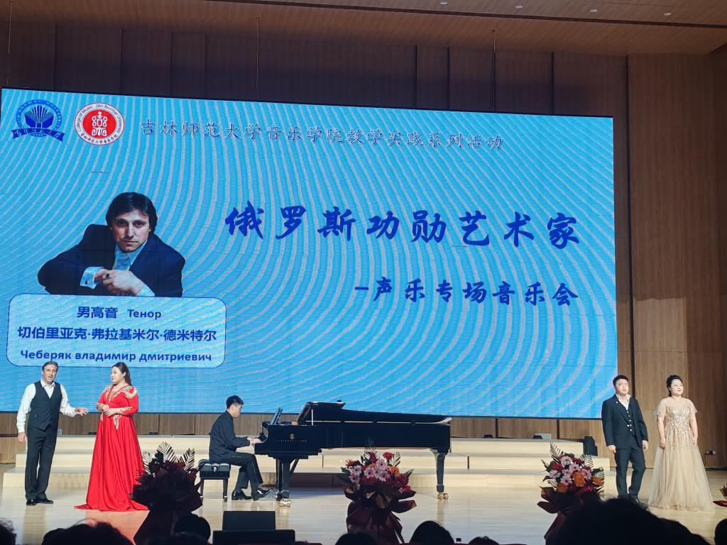 202494日晚,俄罗斯功勋艺术家-切伯亚克·弗拉基米尔教授声乐专场音乐会在音乐厅顺利举办。吉林太阳成集团tyc122cc入口校长杨小天教授、东北太阳成集团tyc122cc入口音乐学院博士生导师尹正文教授等嘉宾亲临现场,共同见证这场音乐盛宴