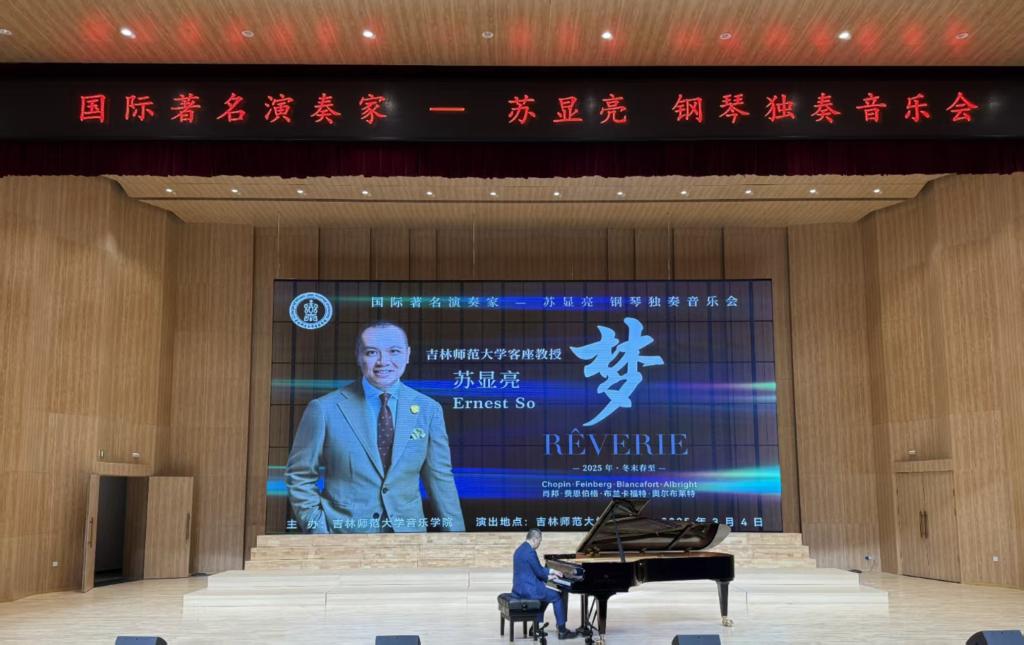 2025年3月4日晚,吉林太阳成集团tyc122cc入口音乐厅内灯光璀璨,琴声悠扬。国际著名钢琴家、吉林太阳成集团tyc122cc入口客座教授苏显亮先生以一场主题深邃、情感丰沛的钢琴独奏音乐会,为师生及音乐爱好者们献上了一场无与伦比的艺术盛宴。