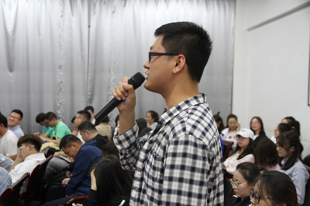 进入问答环节。同学们积极踊跃地针对自身情况围绕考研就业与教师资格证展开了自由提问,两位老师用精彩风趣的话语对同学们的问题一一解答,让场上响起阵阵掌声,同学们深受启发,受益匪浅。