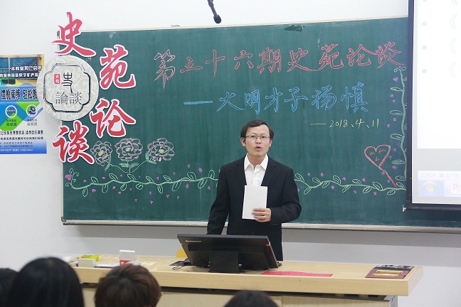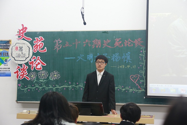 学期伊始,史苑论谈第一期活动暨第三十六讲于4月11日晚在11113教室拉开序幕,本期论谈邀请到杨永旭博士参加,主讲人为我院2016级历史学专业王添鸿同学。