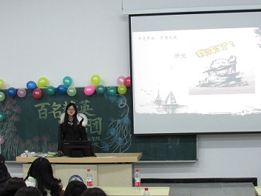 学院2015级历史满语专业学生陈薪如用幽默生动的语言分享了自己在大学期间参加各种活动而收获的宝贵经历,告诉同学们要坚持梦想;学院2016级历史专业学生贾珊珊更是谈到从学院的各种活动中可以塑造自己的性格,磨练自己的心性,并为同学们介绍了自己的学习方法;来自2015级经济学院国际经济与贸易专业的杨雨芬从自身学习经历谈起,分享自己的学习技巧,思维方式,为同学们的日后学习指出了正确学习方式;来自美术学院的罗穆辉他讲述了实习和创立公司期间的种种经历,引人深思;来自计算机学院的李璞从原来的成绩平庸,凭借一股不服输的劲头,获得国家奖学金、国家励志奖学金、一等专业奖学金等多种奖项。最后一位选手是数学学院的李佳航,她分享了自己失败的经历,告诉同学要走出书本,放开眼界并且坚持自我才能成功。