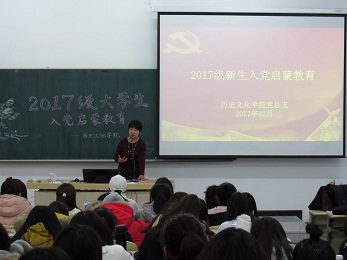 为进一步深入开展新生教育,提高新生入党觉悟,坚定入党信心,学院党总支书记王伟于12月13日下午在11113教室对2017级全体同学进行了入党启蒙教育。