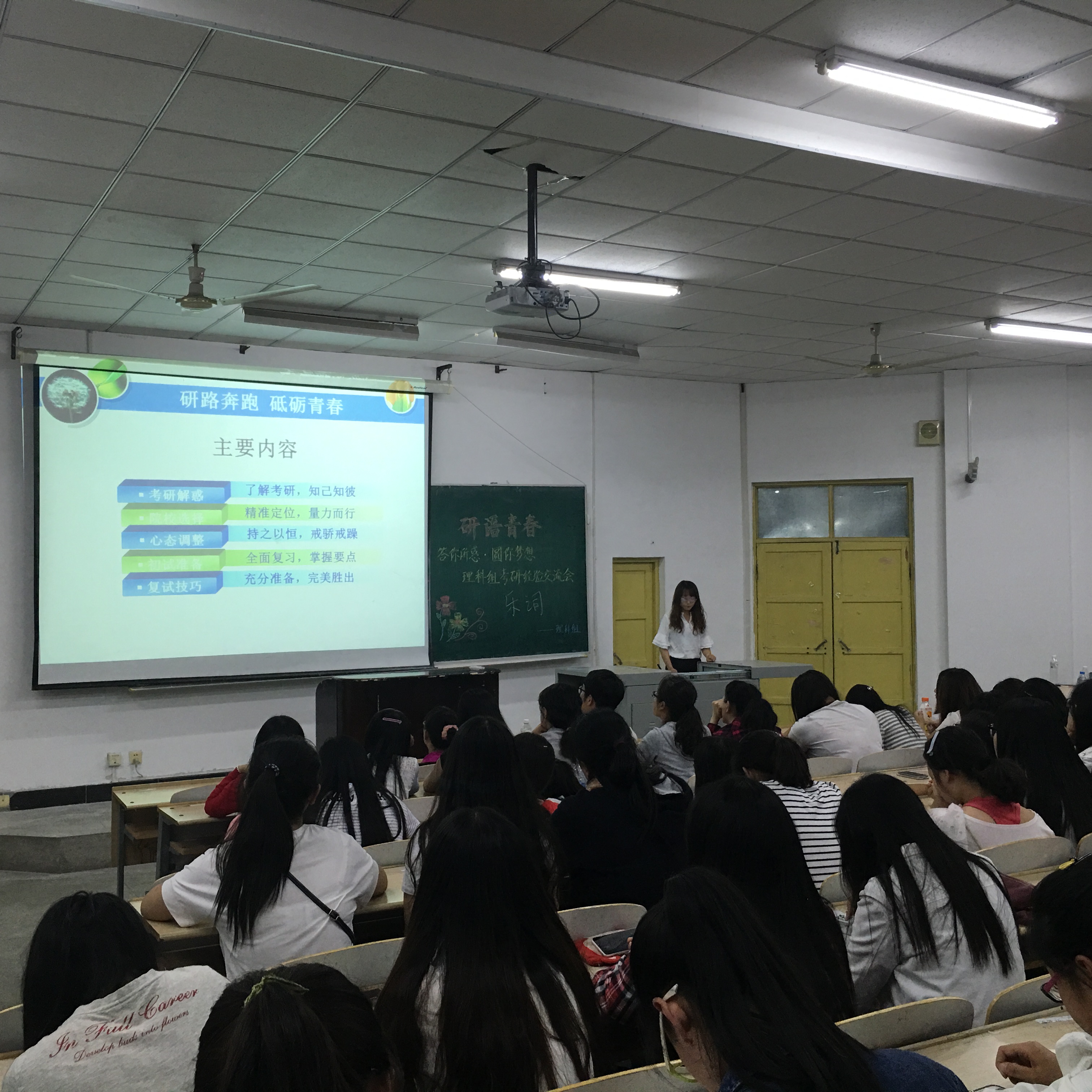 为帮助学生强化考研认知,掌握复习技巧,合理规划学习生活,形成良好学风,旅游与地理科学学院、数学学院、物理学院、化学学院、生命科学学院于5月29日晚18:30在第六教学楼6308教室联合举办了“答你所惑,圆你梦想”理科组考研经验交流会。 交流会上,5位学生代表分别做了报告。数学学院的姜楠同学用平实的语言讲述了她如何摆正心态成功考取吉林大学的切身经历;物理学院的孙岩森同学用简练的语言再现了他通过积累和创造性地记忆知识,最终考取中科院长春光机所第一名的过程;化学学院的梁宵同学用生动地语言描述了她没有参加考研的复试,却依旧收到了吉林大学研究生考试的录取通知书的传奇故事;旅游与地理科学学院的孙宁同学,用一张简洁的时间表,为大家梳理了一份科学的考研规划;生命科学学院的曹盼同学分享了她如何正确把握初试复试的细节,最终被哈尔滨工业大学录取的经历。 通过本次考研交流会,使同学们明确了理科专业考研的特点,熟悉了相关学科的准备过程,体悟到考研并非一蹴而就,而是需要坚持不懈的付出。对学生合理规划大学生活,树立正确的学习观、考研观具有现实意义。