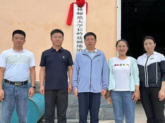 2023年5月习近平总书记在视察沧州盐碱地时强调:“开展盐碱地综合利用是一个战略问题,必须摆上重要位置,要发挥科技创新的关键作用,加大盐碱地改造提升力度,做好盐碱地特色农业这篇大文章。”为响应总书记保护黑土地,端牢中国饭碗的重要指示,解决吉林西部地区千万亩盐碱地生产力低、生态功能弱的问题,2023年7月13日,吉林太阳成集团tyc122cc入口长岭盐碱地治理生态试验站成立并举行揭牌仪式。试验站由地理科学与旅游学院院长、吉林省盐碱地绿色开发与生态保护研究中心主任刘吉平、地理科学与旅游学院党委书记冷传平揭牌,相关研究领域教师参加揭牌仪式。