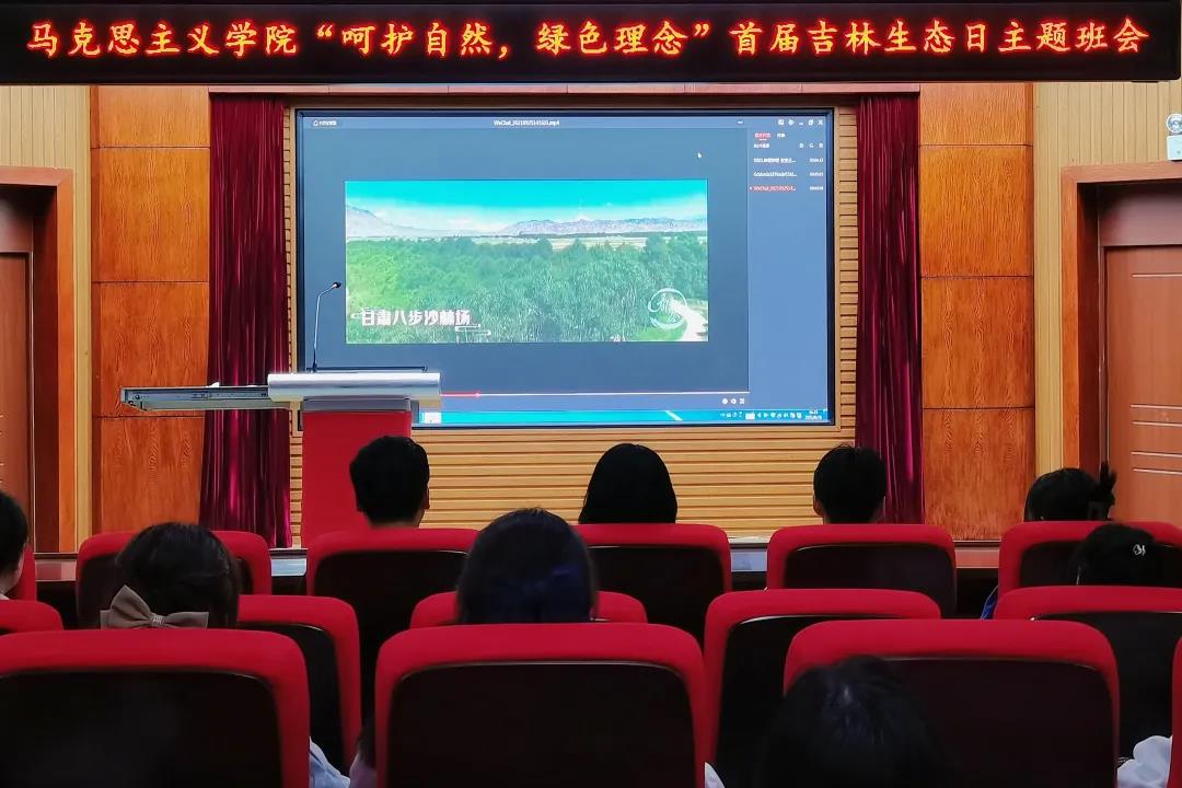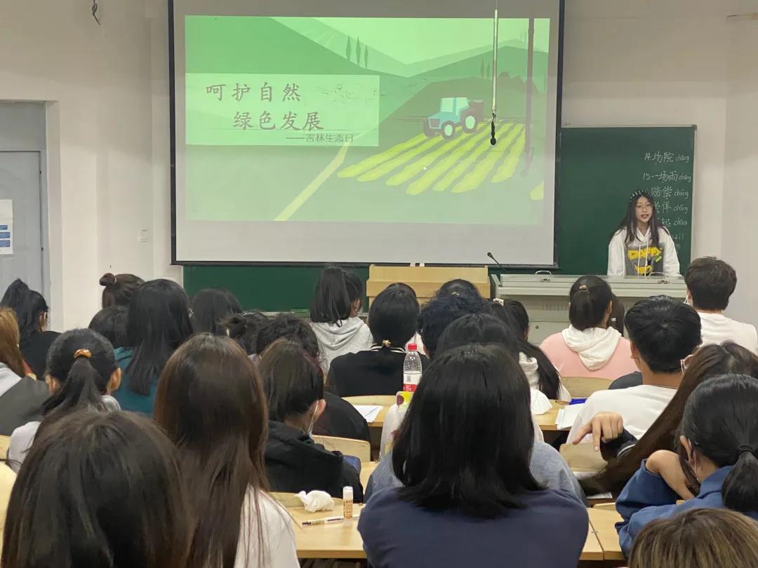 为贯彻习近平生态文明思想,推进生态环境保护,营造良好保护生态氛围,我院于9月26日晚6:30在田家炳教育书院124报告厅、111教室举办了“呵护自然,绿色理念”首个吉林生态日的主题班会,2021级全体同学参加了此次班会。