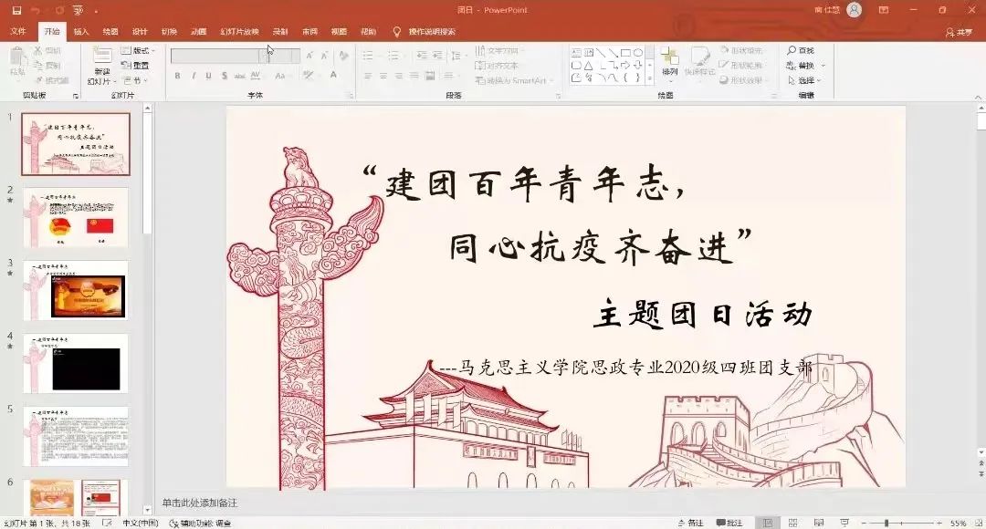 通过此次团日活动,同学们更加能够将中国共产主义青年团团史牢记于心、外化于行,始终牢记共青团员身份,在今后的学习和生活中,马院青年必能融共青团精神于抗击新冠疫情中,共克时艰,守护我们永恒不变的民族心!