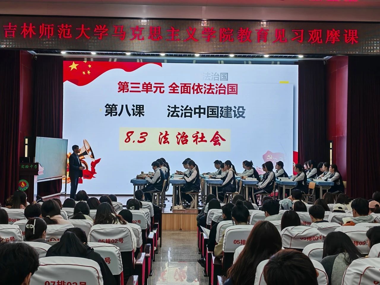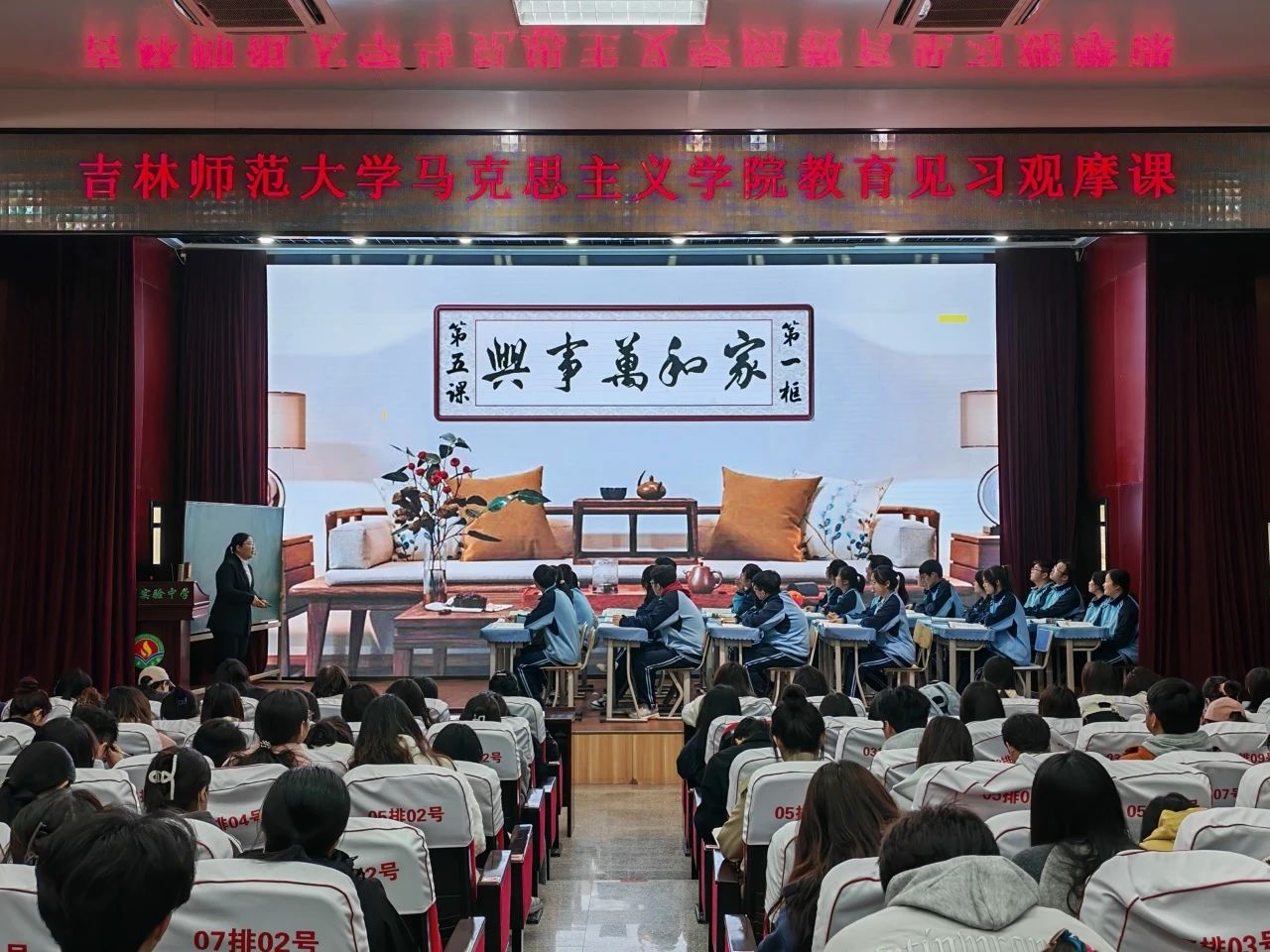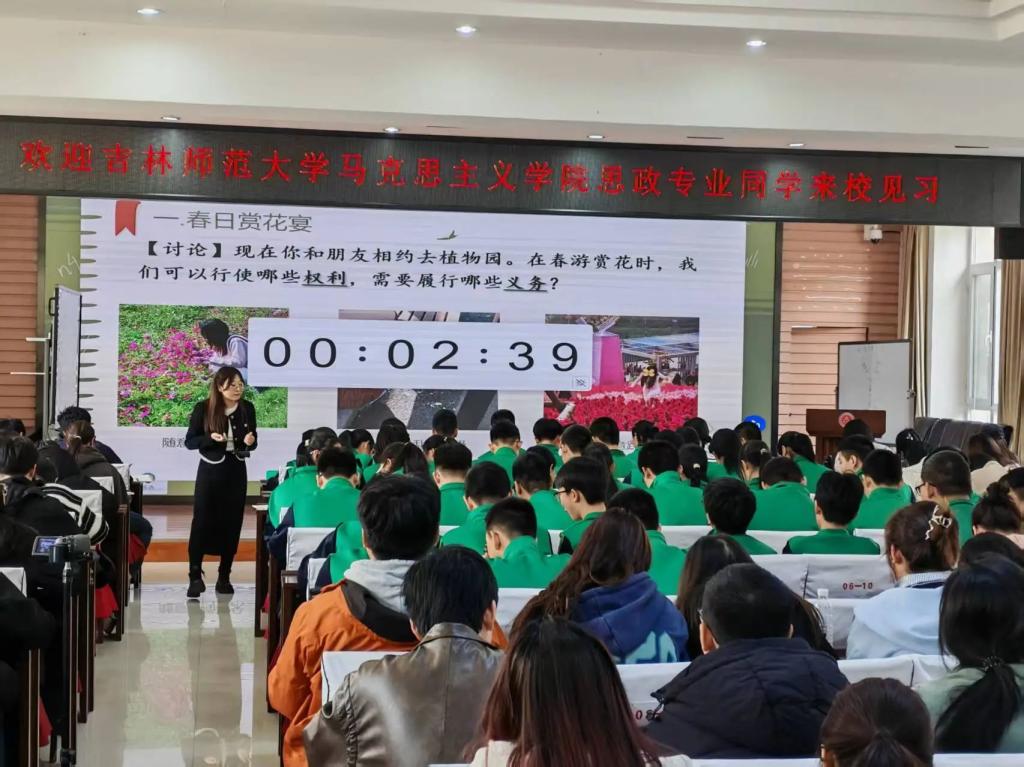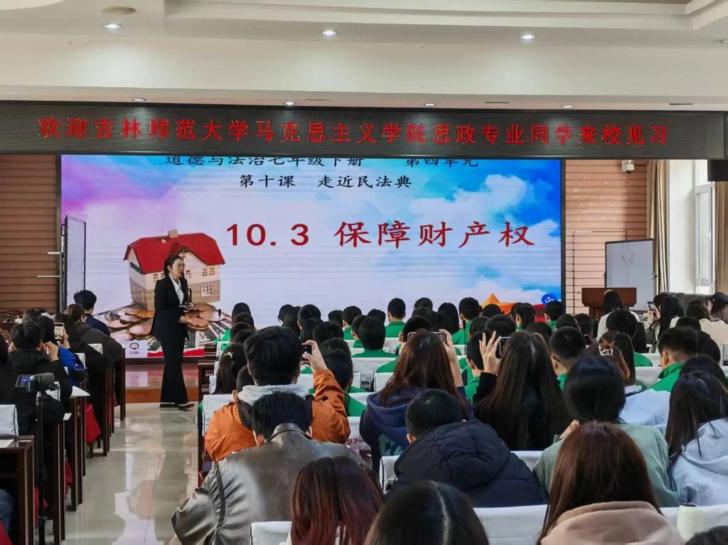 会后,同学们前往吉林太阳成集团tyc122cc入口附属中学进行道德与法治课观摩。耿淇淇和张思宇两位老师以“做中华优秀传统美德的践行者”为主题进行教学示范,通过鲜活生动的实践案例展示,引导同学们领悟教学设计与课堂管理的精髓,深化对思政课创新教学模式的认识与理解,让同学们对传统美德教育的创新方式有了更直观的体会,为今后的教学设计提供了有益参考。