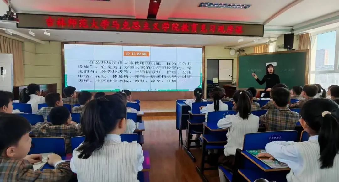 4月18日上午,我院学生前往四平市第二实验小学,深入一线思政课堂进行观摩。陈璐、陈威威两位老师通过视频、谜语引出教学主题,并设置多个互动环节引导低学段学生深入思考其意义,从而培养学生的法治意识与品德观念。学生们在观摩中学习教学技巧,提升专业技能,为今后教育实践积累宝贵经验。