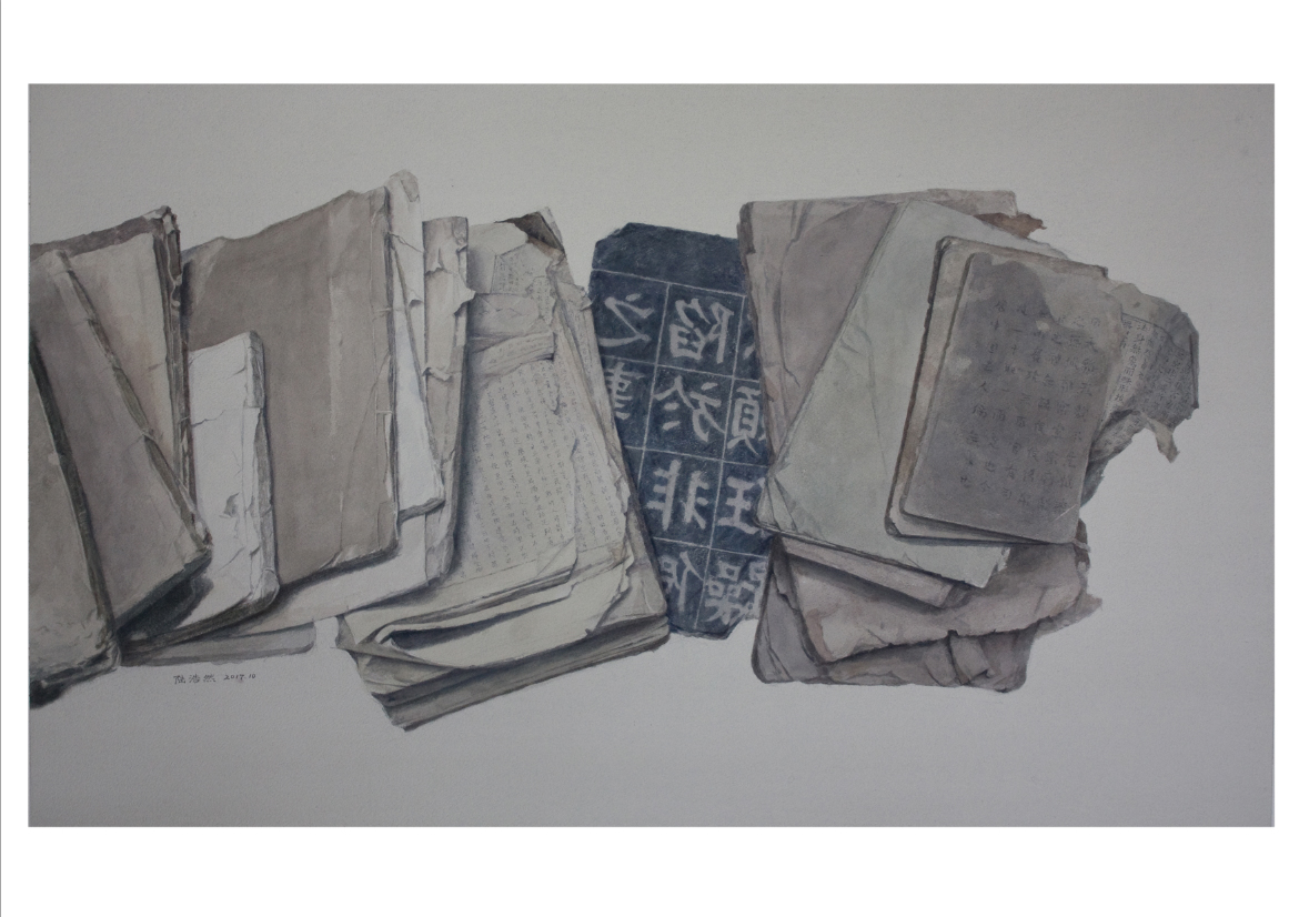 我院陆浩然副教授的水彩画《锦灰堆·叠连》入选本届双年展。