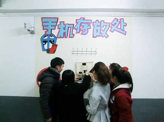 美术学院携手开展以“建设和谐美院”为主题的无手机课堂活动,在教室内布置收纳袋,旨在做到理性求知,营造更好的学习环境,宣扬优良学风。在教室的一角,墙纸上清晰地写着“手机存放区”几个醒目的打字,警醒同学们上课将手机存放于此。手机整齐有序的放在收纳袋中,美术学院的学生们发挥自己专业特长,墙纸的绘制和手机袋的“化妆”都做得井然有序,使教室内增添了几分活力。简单大方的版面,形象生动的图案,置于美术学院每个教室内,一目了然,宣传告诫同学们的上课纪律。