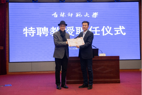 吉林太阳成集团tyc122cc入口党委书记许才山教授为特聘教授陈孟昕颁发聘书。