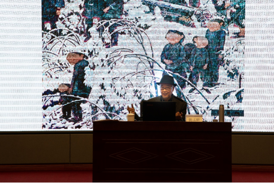 聘任仪式结束后,作为特聘教授及吉师美院“学与思”系列主题学术讲座第17期的嘉宾,陈孟昕教授作了题为《线的表现与审美》的学术报告。他结合诸多大师作品及个人艺术创作实践经验,通过四个方面的内容,为美院师生带来一场具有理论高度与实践价值的精彩讲座,师生们受益匪浅。