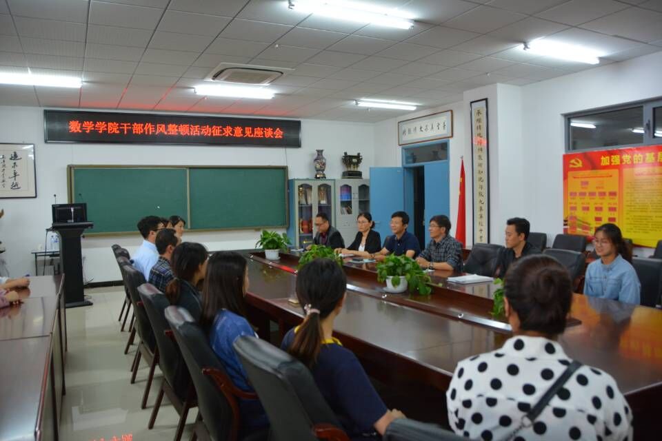 9月8日,数学学院在学院党员活动室召开了干部作风大整顿活动征求意见会。学院党委委员及部分师生代表参加了会议。
