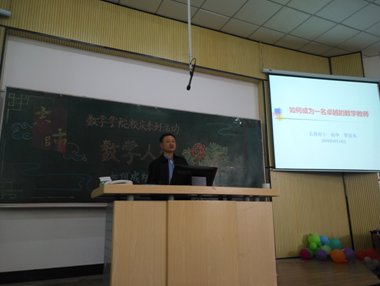 2018年9月14日,喜迎我校建校60周年之际,数学学院特邀83级校友罗彦东回母校,为同学们做了题为“如何成为一名卓越的数学教师”的报告。数学学院院长刘鹏飞、副院长程晓亮及部分师生参加了本次报告会。