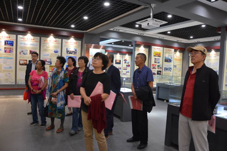 图三:七九级校友、中共白城市委书记庞庆波在学院领导陪同下参观学院长廊文化——老照片墙