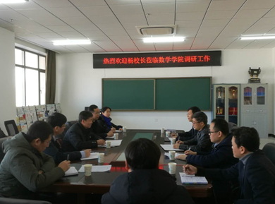 3月5日上午,杨景海校长在校长办公室、教务处、人事处、学生处、科研处相关领导的陪同下,莅临数学学院进行调研、走访。期间,与数学学院相关领导进行亲切座谈。数学学院刘鹏飞院长主持座谈会,并介绍学院新学期教学管理运行、科研项目申报等情况,着重围绕人才培养、学科发展、师资队伍建设、科研实验平台建设工作汇报新学期具体工作思路。杨景海校长及与会职能部门领导充分肯定了学院新一年的工作思路,并对学院发展中遇到的具体困难、制约学院发展的瓶颈问题提出建设性意见与解决办法。