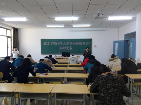 2016年12月7日,学院党委组织全体教师举行了《中华人民共和国教师法》知识竞赛,通过竞赛更好的推进普法活动的深入进行。