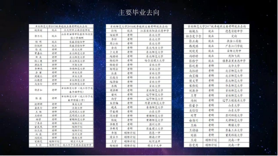 目前,已有9届卓越数学教师班学生,在校内外各种活动、入党、考研和就业中表现突出。几年来,卓越数学教师班学生在校期间获得省级以上各种竞赛奖励每人平均3项以上。考研率和考研质量也逐年稳步提升,每年都有学生考取新的学校,特别是985高校和双一流专业。6届卓越班毕业生,在工作岗位和读研学校产生了积极反响,体现了其数学专业基本功扎实、数学教育教学技能娴熟等专业品质,其中1人获省级青年教师教学竞赛一等奖,1人获省级优质课大赛二等奖,8人次获课件大赛、教学案例大赛等省级以上奖励。4人获区、县优秀班主任称号。我院的卓越数学教师试点班工作得到兄弟院校高度评价,社会反响好。