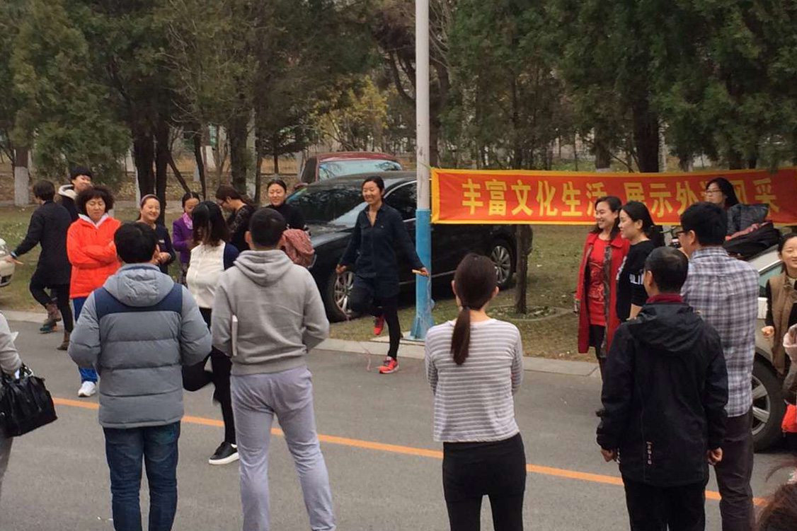 2015年11月4日(周三)下午,在校第二教学楼门前,外国语学院成功举办了“金秋教师跳绳大赛”。老师们踊跃参与,积极上场,跳出了欢乐,跳出了友谊。比赛按年龄(45周岁)进行了分组。经过激烈角逐,获得一等奖的教师是:刘丽芳、池美英、孙桂荣、杜艳春;韩玉斌、姜帆、韩振宇。二等奖教师是:金春实、李春兰、丛林、杨淑玲;高峰、张彧、崔金帅、程文明、牛立忠等。按照之前通知要求,其余参加单人跳绳并有成绩者为三等奖。
