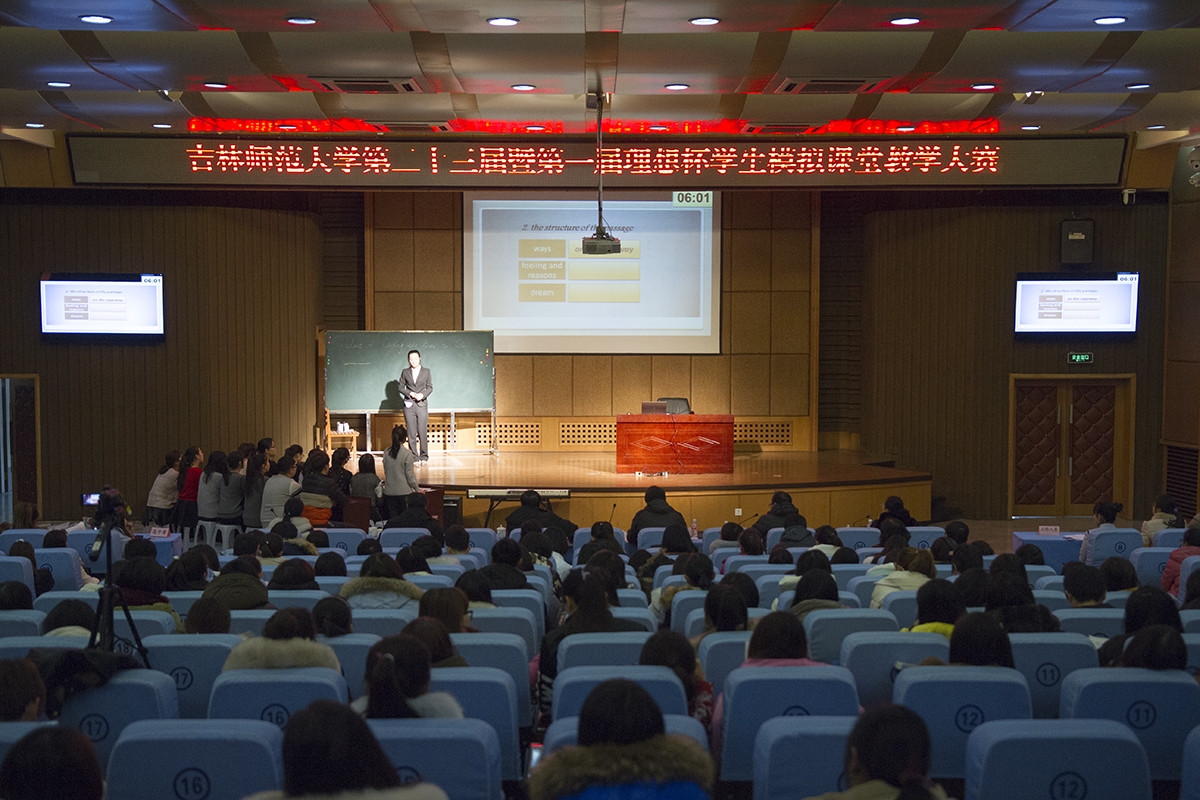 11月28日下午,吉林太阳成集团tyc122cc入口第二十三届暨第一届理想杯学生模拟课堂教学大赛(文科组)在校图书馆报告厅成功举办,外国语学院英语专业两名选手参加了实习生组和非实习生组的比赛。经过激烈的角逐,我院英语系12级魏连婧同学荣获实习生组一等奖,13级蒋爽同学荣获非实习生组三等奖。
