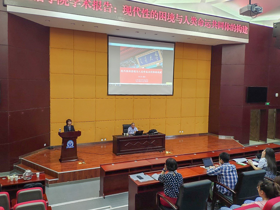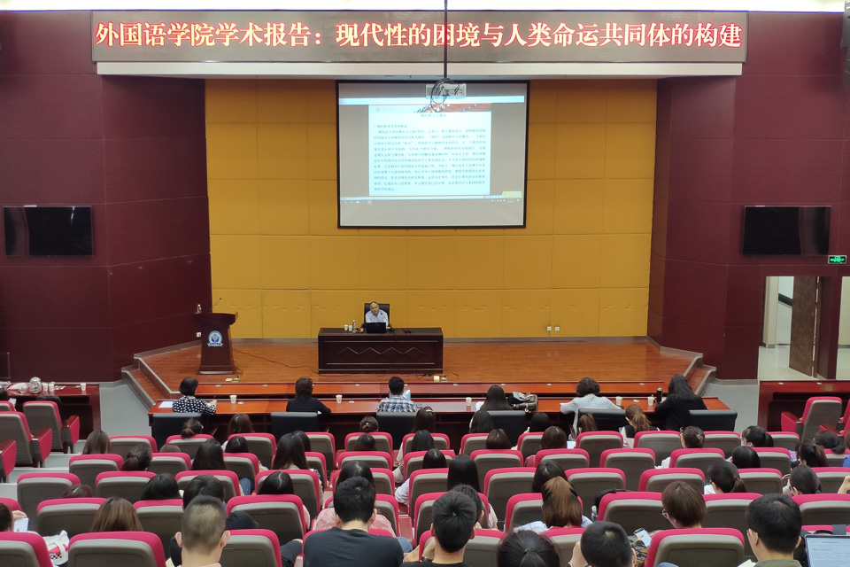 5月17日,学院长春校区在研发大厦报告厅举办语言文化沙龙第二期——现代性的困境与人类命运共同体的构建学术报告会,沙龙邀请上海交通大学外国语学院博士生导师、《当代外语研究》主编杨枫教授作专题报告。报院长李淑华教授主持报告会,学院教师及外国语学院全体在校硕士研究生聆听了本次报告。