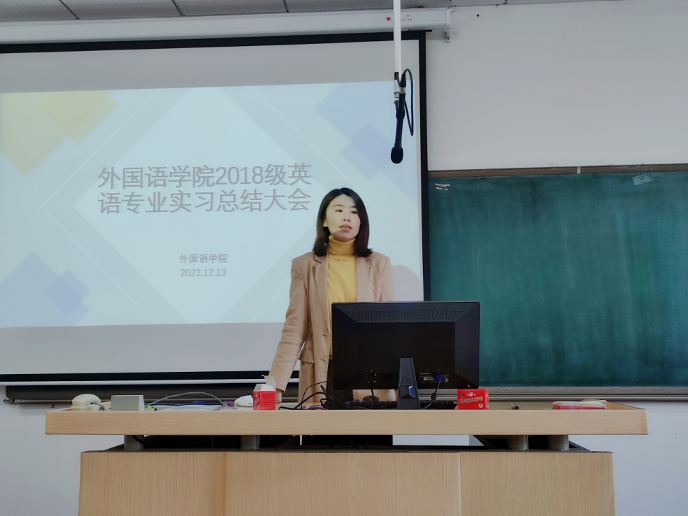 为提高英语师范生教学能力,促进其实践能力及综合素质的提升,及时交流总结实习经验,英语专业按计划于12月13日在第十一教学楼11912教室召开实习总结交流大会,大会由何丽敏老师主持,2018级英语专业全体学生参加。