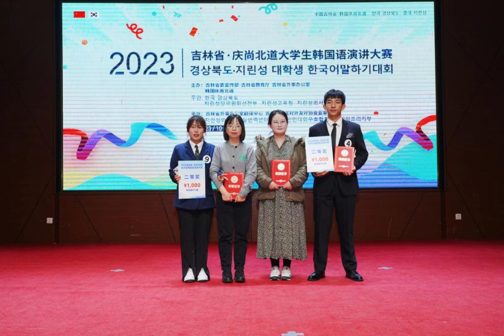10月31日,由吉林省委宣传部、吉林省教育厅、吉林省外事办公室与韩国庆尚北道政府联合主办的2023吉林省?庆尚北道大学生韩国语演讲大赛在长春落下帷幕。我院朝鲜语系2023级孙硕良和王昕瀛同学获二等奖。
