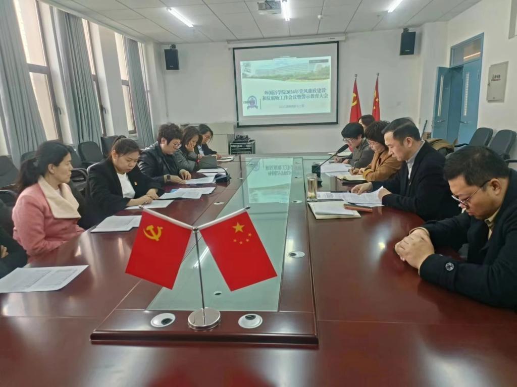 4月12日上午,学院在双创2楼会议室召开外国语学院2024年党风廉政建设和反腐败工作会议暨警示教育大会,党委书记韩强,院长李淑华、党委副书记胡晶、副院长赵岩、李艳红出席会议。学院在平的科处级干部、党支部书记、全体辅导员参加会议,四平、长春两个校区同步网络视频。会议由李淑华主持。