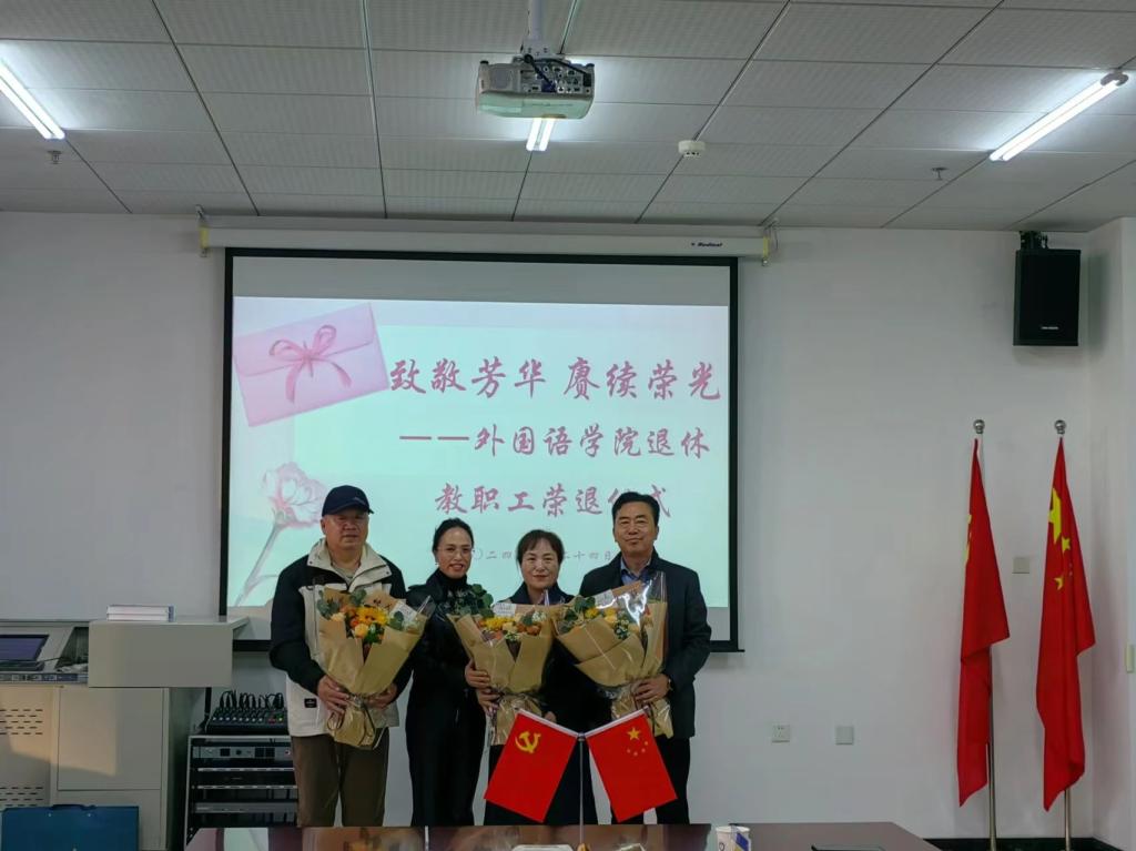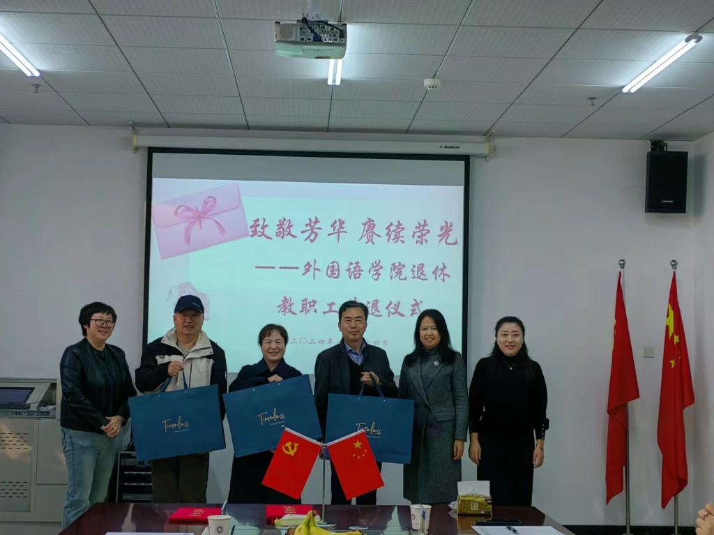 春风育桃李,荣退敬芳华。为表彰和感谢退休教师对教育事业的贡献,10月24日下午,学院在双创2楼会议室召开“致敬芳华 赓续荣光”退休教职工荣退仪式,欢送景伟明、高洪第、孙淑霞、徐平、王申光荣退休。院长李淑华、党委书记韩强、副院长赵岩、李艳红、潘雁,办公室主任赵天琪、工会主席纪颖出席仪式。高洪第、徐平、王申应邀参加仪式。仪式由李淑华主持。