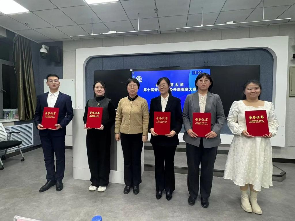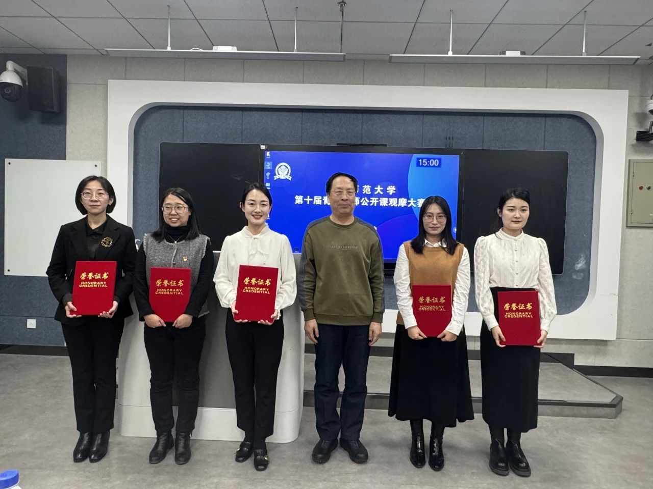 12月15日,我校第十届青年教师公开课观摩大赛在第11教学楼举行。经过初赛选拔,共有来自全校19个单位的39名选手进入决赛。现场激烈角逐后,我院选派的3名教师全部获奖,其中池美英、钱可鉴分别以文科组总分第一名和第二名的成绩荣获“教学标兵”称号,于丹荣获“教学能手”称号。