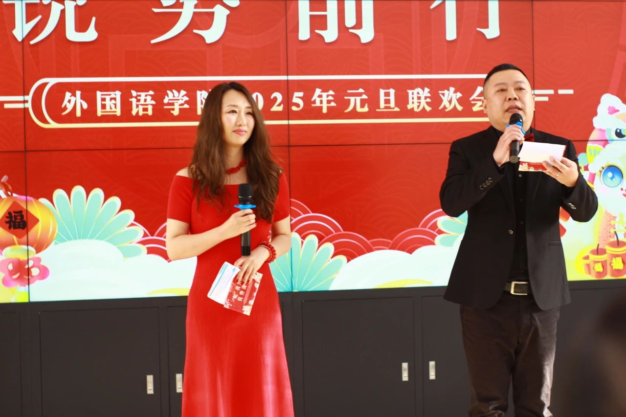 欢声笑语庆元旦,团结奋进迎新年。12月25日下午,学院在双创4楼报告厅举办“‘蛇’我其谁,锐势前行”2025年元旦联欢会。院长李淑华、党委书记韩强、副院长赵岩、李艳红、潘雁、党委副书记胡晶出席活动,全体教职工参加活动。聂亮、刘冬霞主持联欢会。