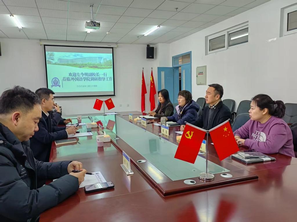 2月24日上午,校党委常委、副校长左今明一行来学院走访调研指导新学期开学各项工作,信息网络中心主任董延华、科长郑浩陪同调研,院长李淑华、党委书记韩强、副院长李艳红、党委副书记胡晶、办公室主任赵天琪在双创2楼会议室参加汇报会。会议由李淑华主持。