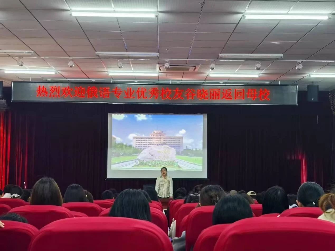 4月29日上午,学院在11204报告厅举办大学生自主创业专题报告会。本次活动邀请我院2009届俄语专业校友、北京鸿馨谷贸易有限公司总经理谷晓丽担任主讲嘉宾,为俄语专业本研学生及任课教师分享创业经历与职业规划心得。报告会由俄语系主任王春红主持。
